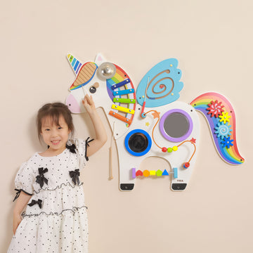 This beautifully designed unicorn wall toy includes popular features such as turning gears, wire beads,...