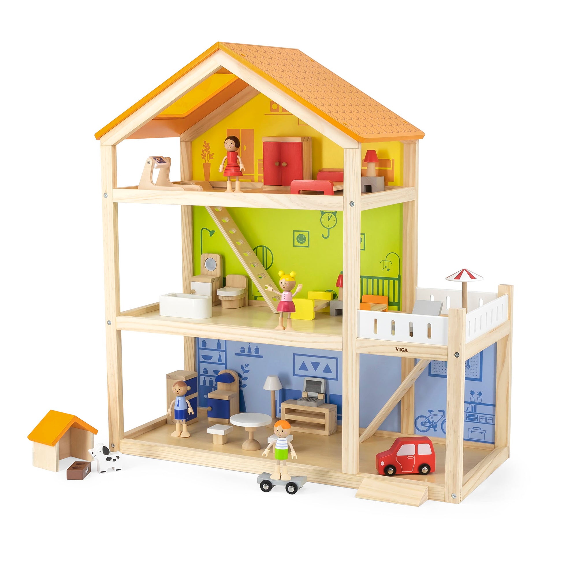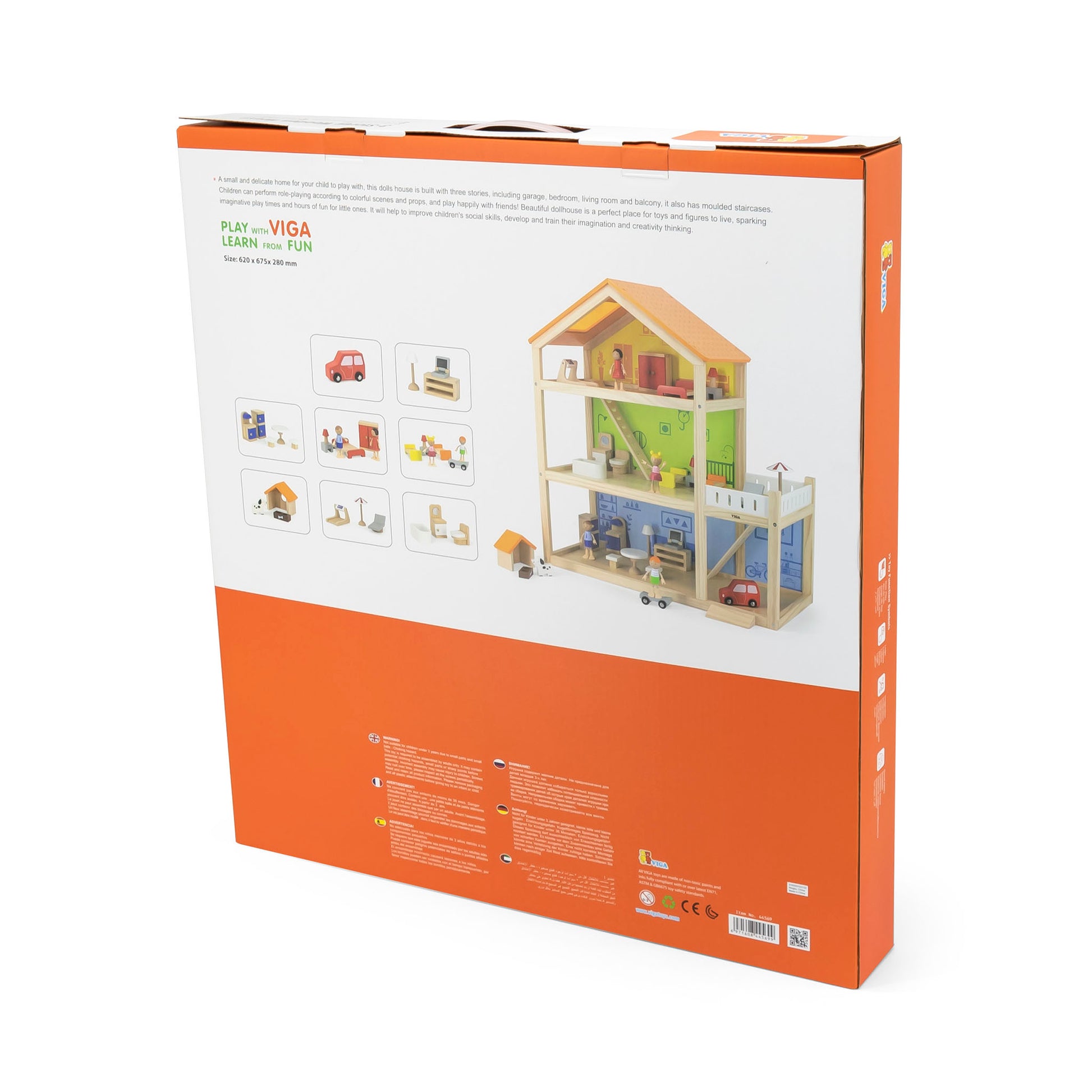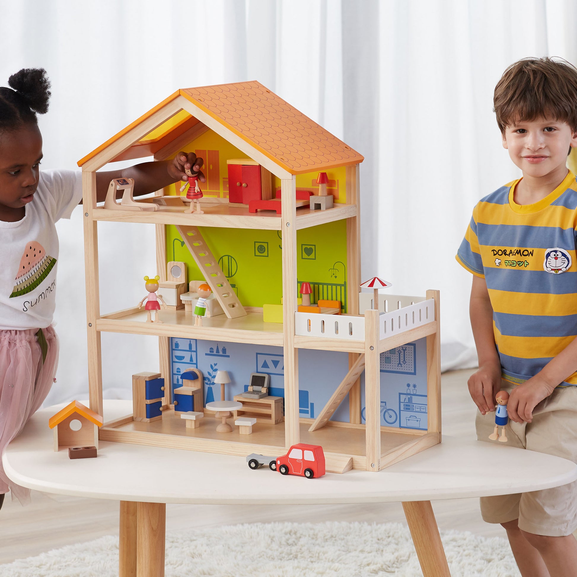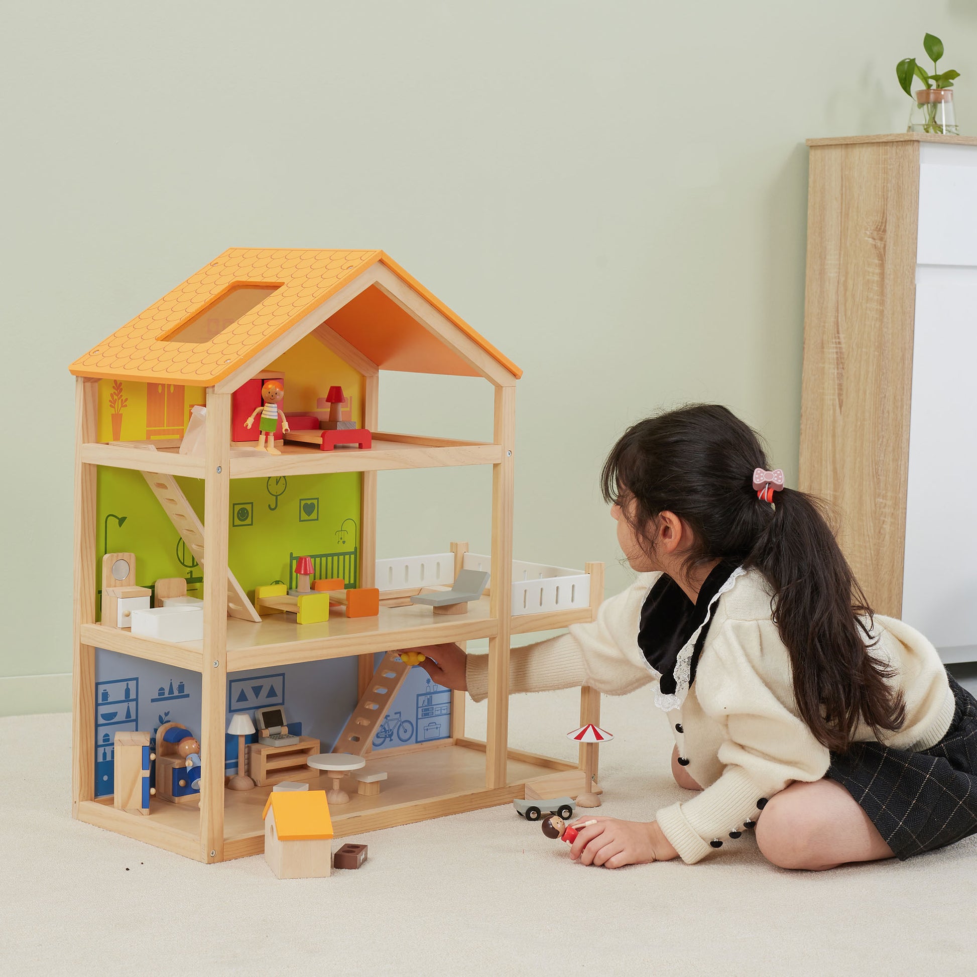 A small and exquisite dollhouse designed for your child's delightful playtime. This charming three-story home features a garage, bedroom, living room, and a lovely balcony, complete with intricately molded staircases. With its vibrant scenes and accompanying props, children can engage in immersive role-playing adventures and enjoy joyful moments with friends. The dollhouse serves as an enchanting abode for toys and figures, igniting imaginative play sessions that captivate little ones for hours on end. Not only does it foster social skills in children, but it also nurtures and hones their imaginative thinking and creativity.