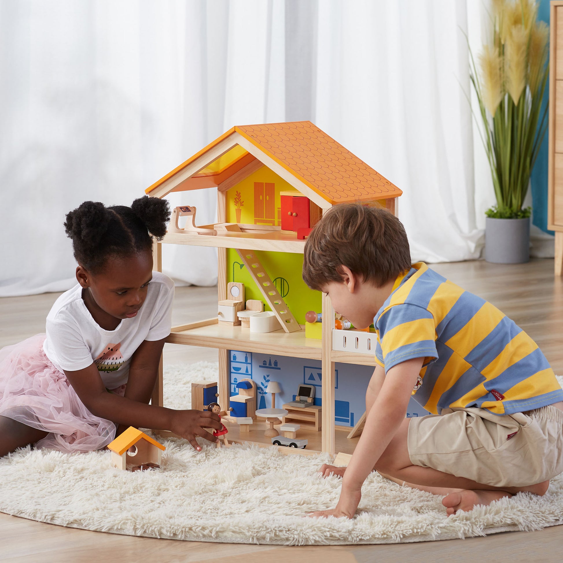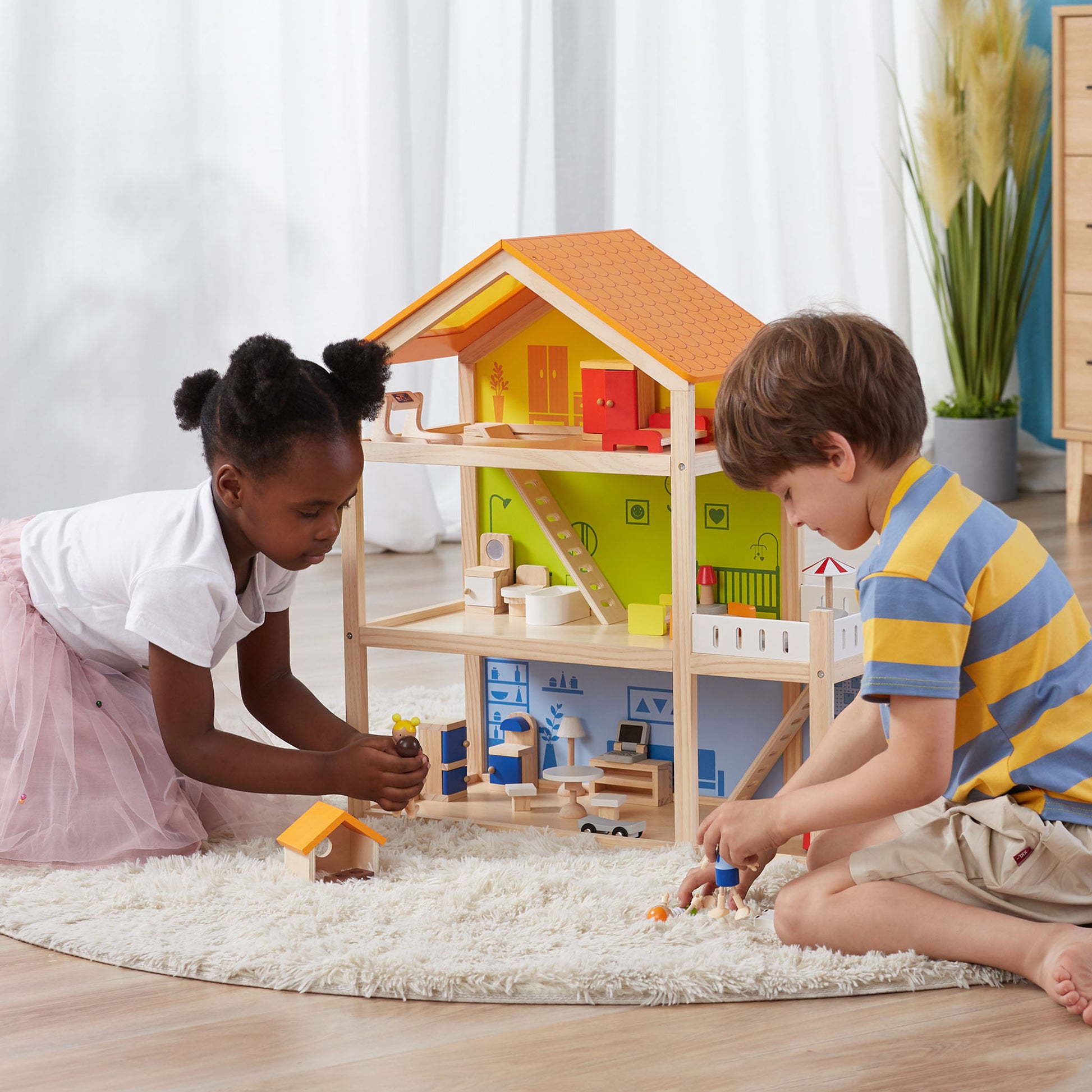 Exquisite Three-Story Dollhouse for Delightful Playtime and Imaginative Adventures