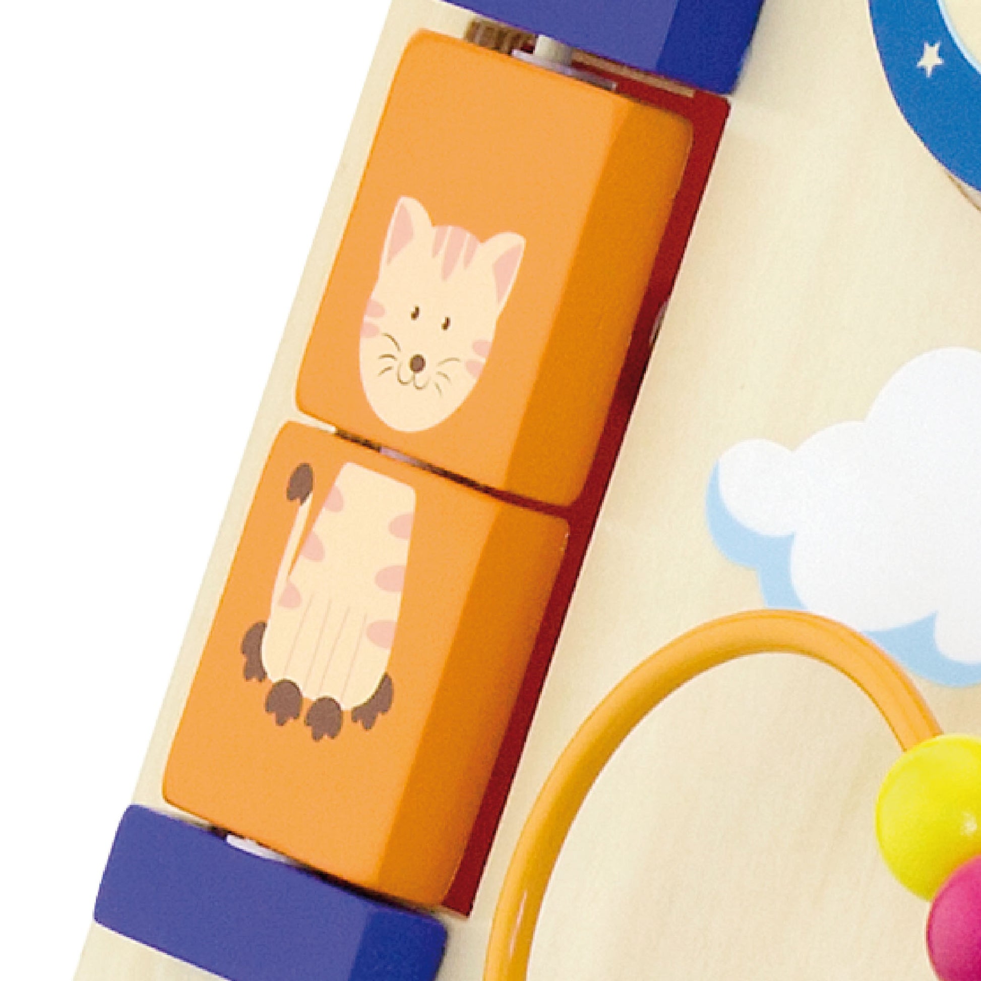 The sides of the walker offer even more play opportunities with gears, track, and trace blocks. Little hands can engage in manipulating gears and fitting blocks into their corresponding slots, promoting problem-solving skills and cognitive development.