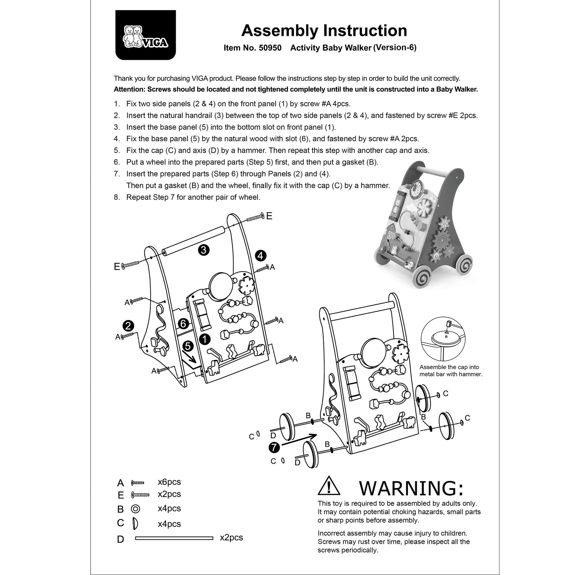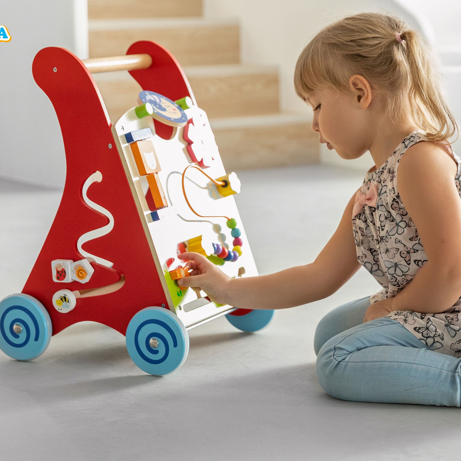 This baby walker offers a comprehensive play experience, combining different activities to stimulate your child's senses, promote motor skills, and encourage exploration and discovery. It's an excellent tool to support their early development while they take their first steps.