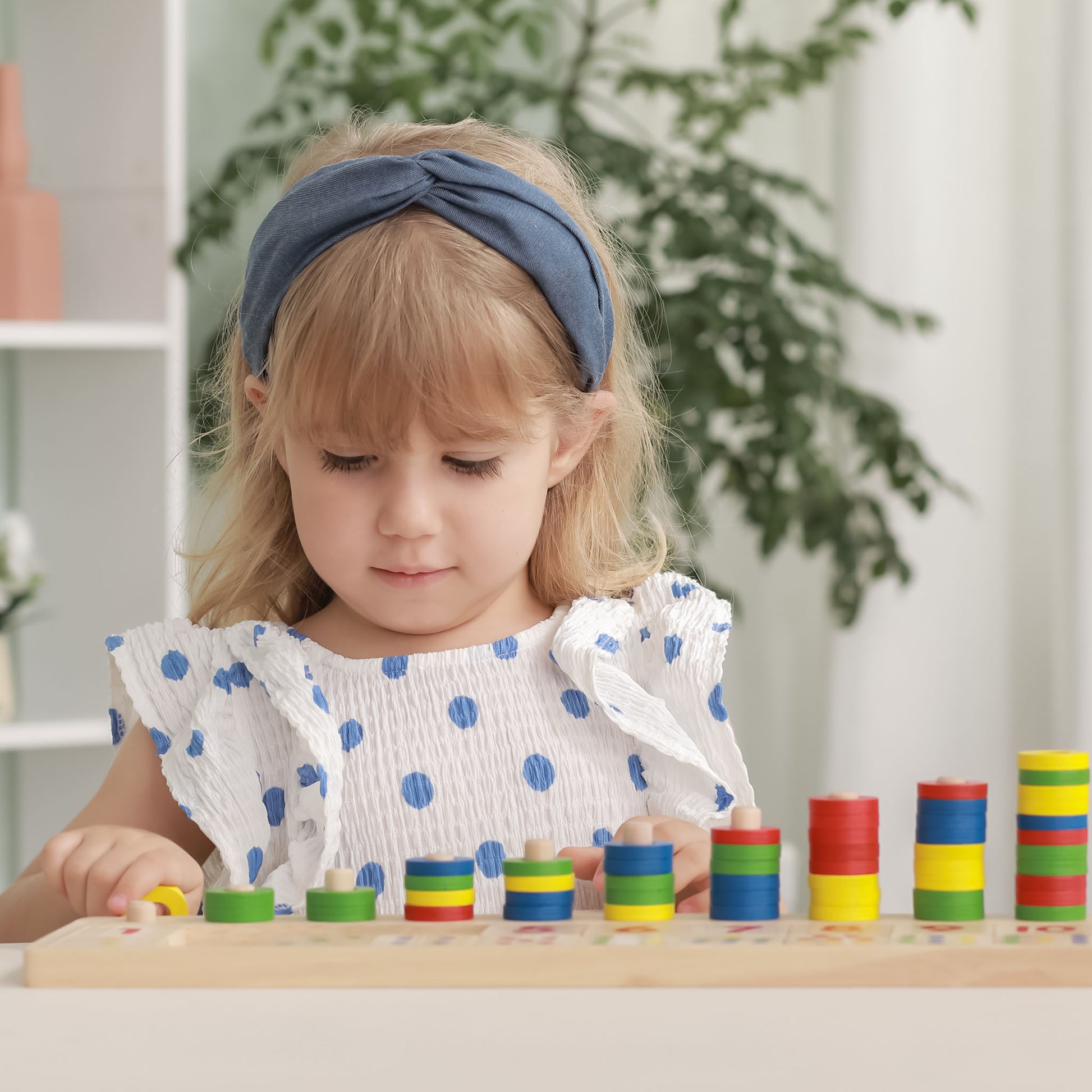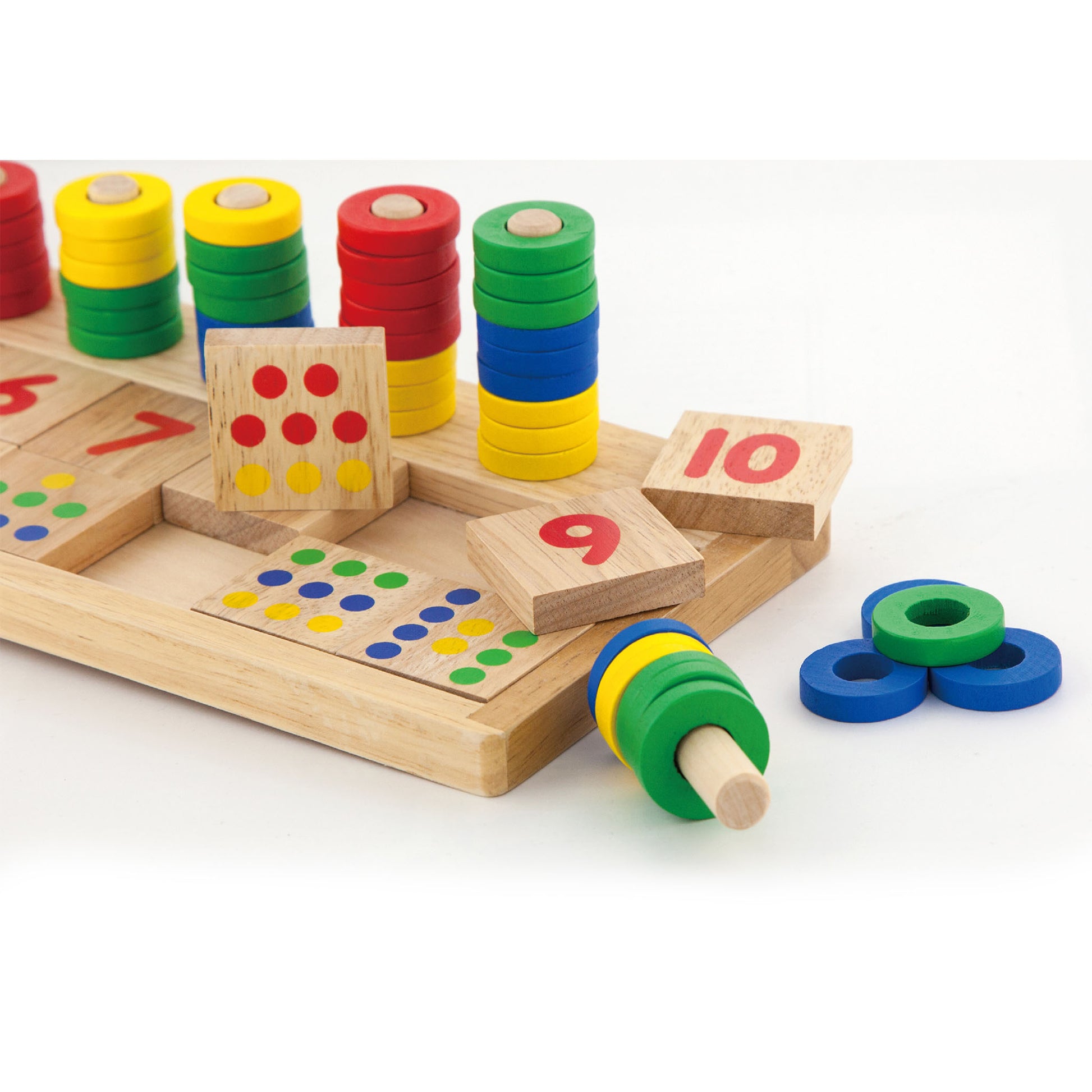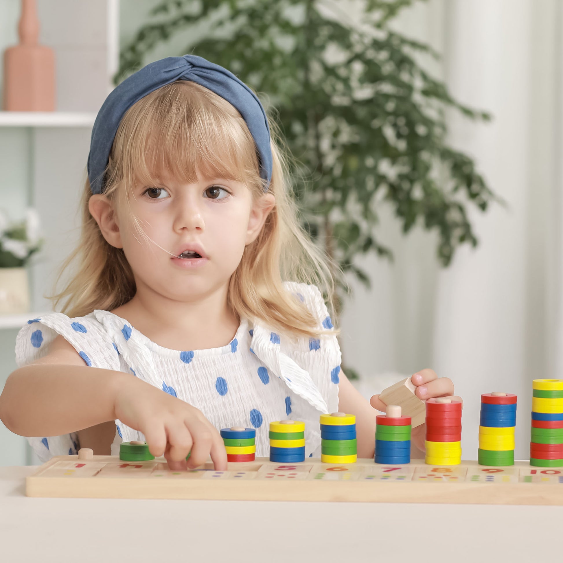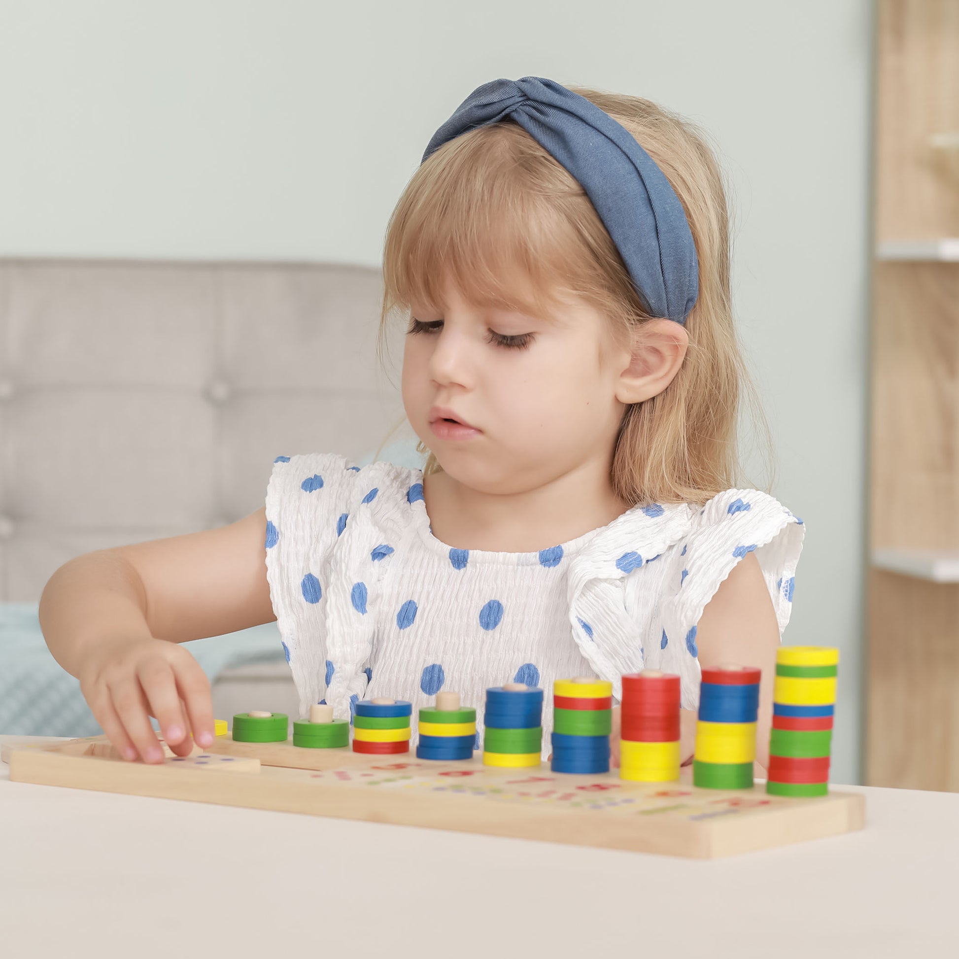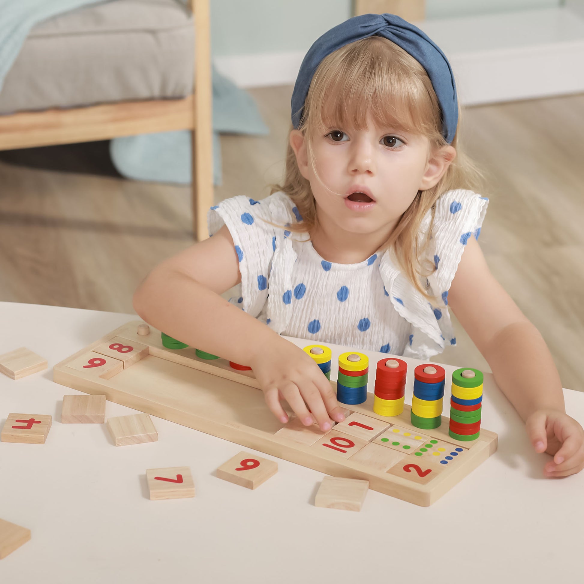 Children can explore numbers by placing the wooden rings onto the corresponding square pieces, reinforcing number recognition and numerical order. As they count the rings and associate them with the matching numbers, they develop essential math skills and build a strong foundation for future learning.
