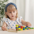 Crafted with high-quality rubber wood, each piece is meticulously painted and printed by hand, ensuring durability and a smooth, tactile experience. The set includes 55 wooden rings and 20 square pieces, providing ample opportunities for counting and matching activities.