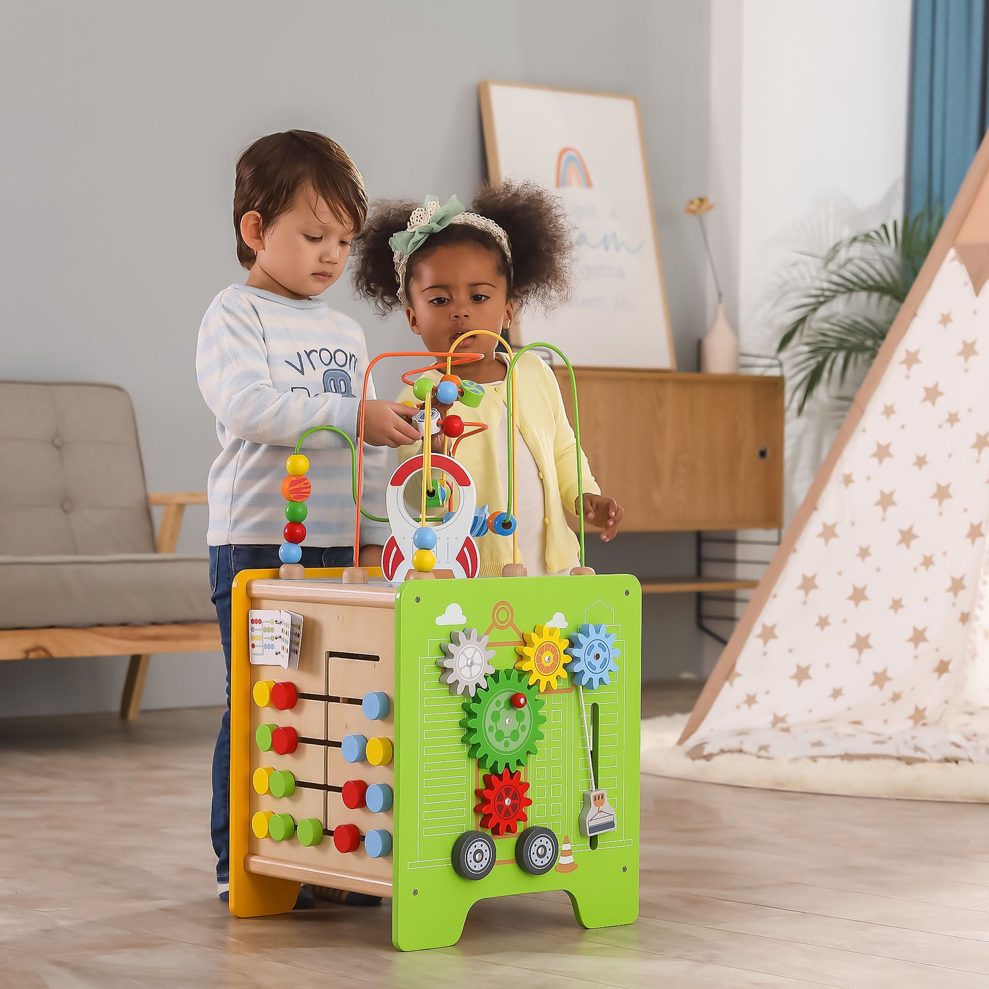 This activity box is packed with a variety of interactive features, including wire beads, a track maze, spinning gears, an animal shape sorter, and a fire ladder game. Each function provides a unique play experience, encouraging children to explore, problem-solve, and develop essential cognitive skills.