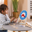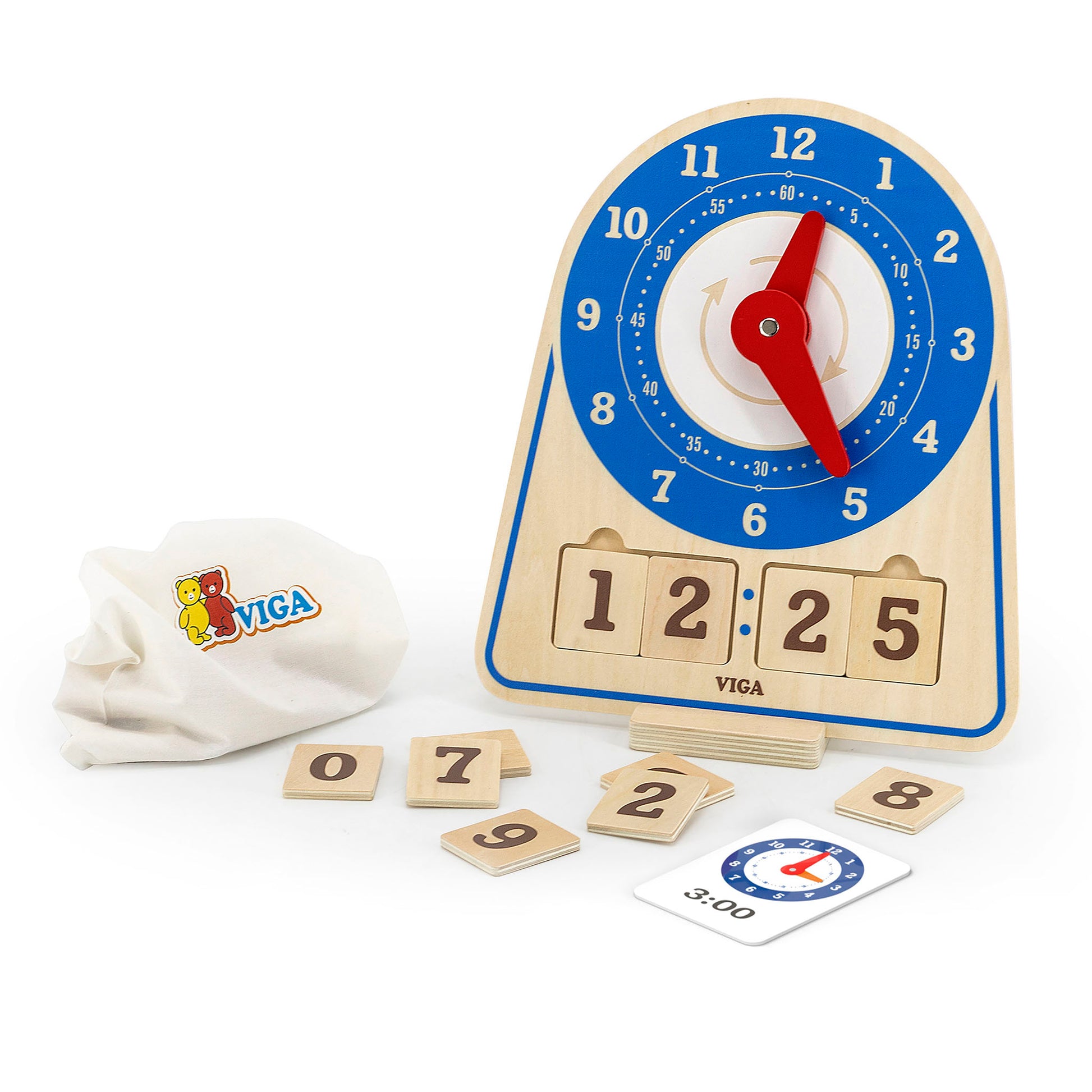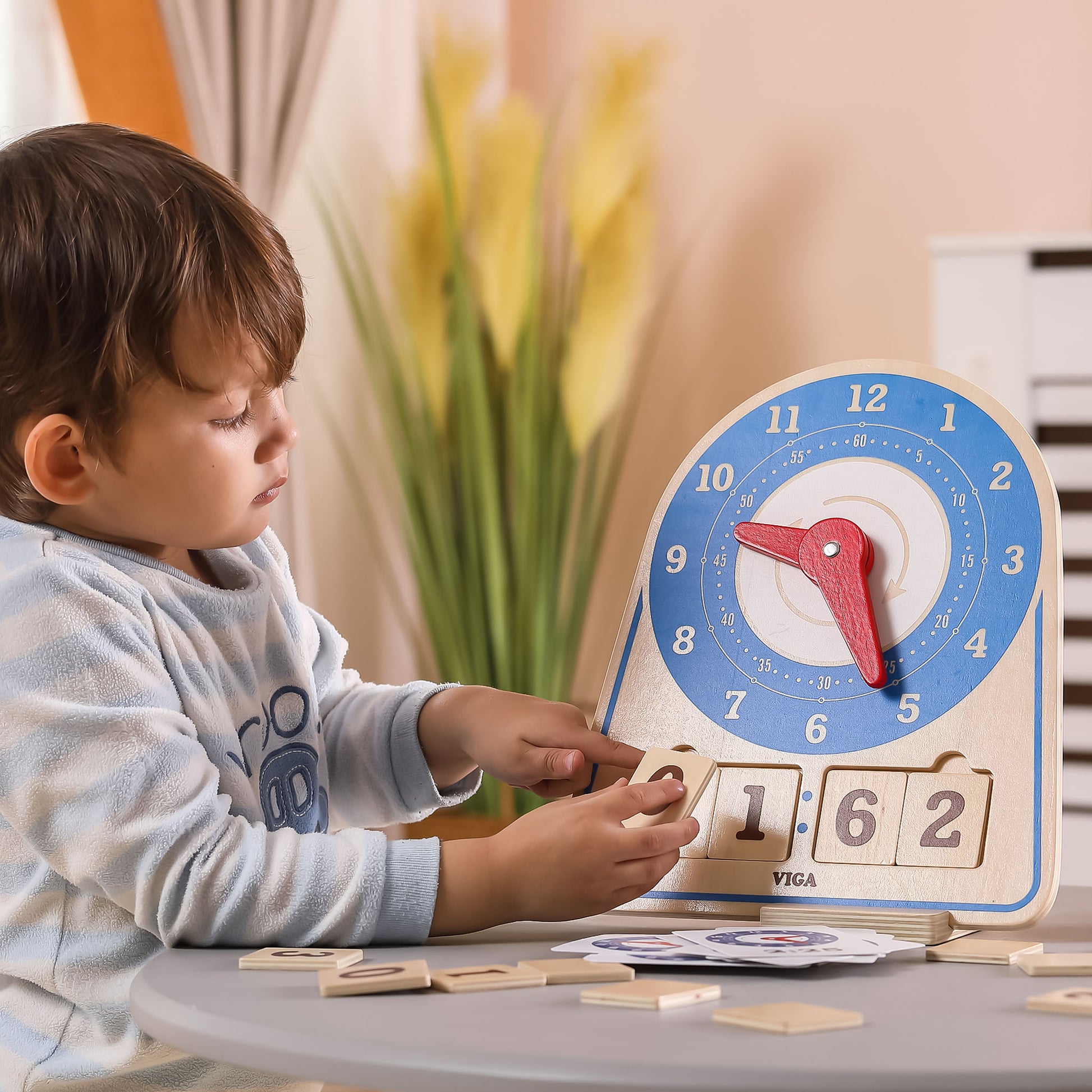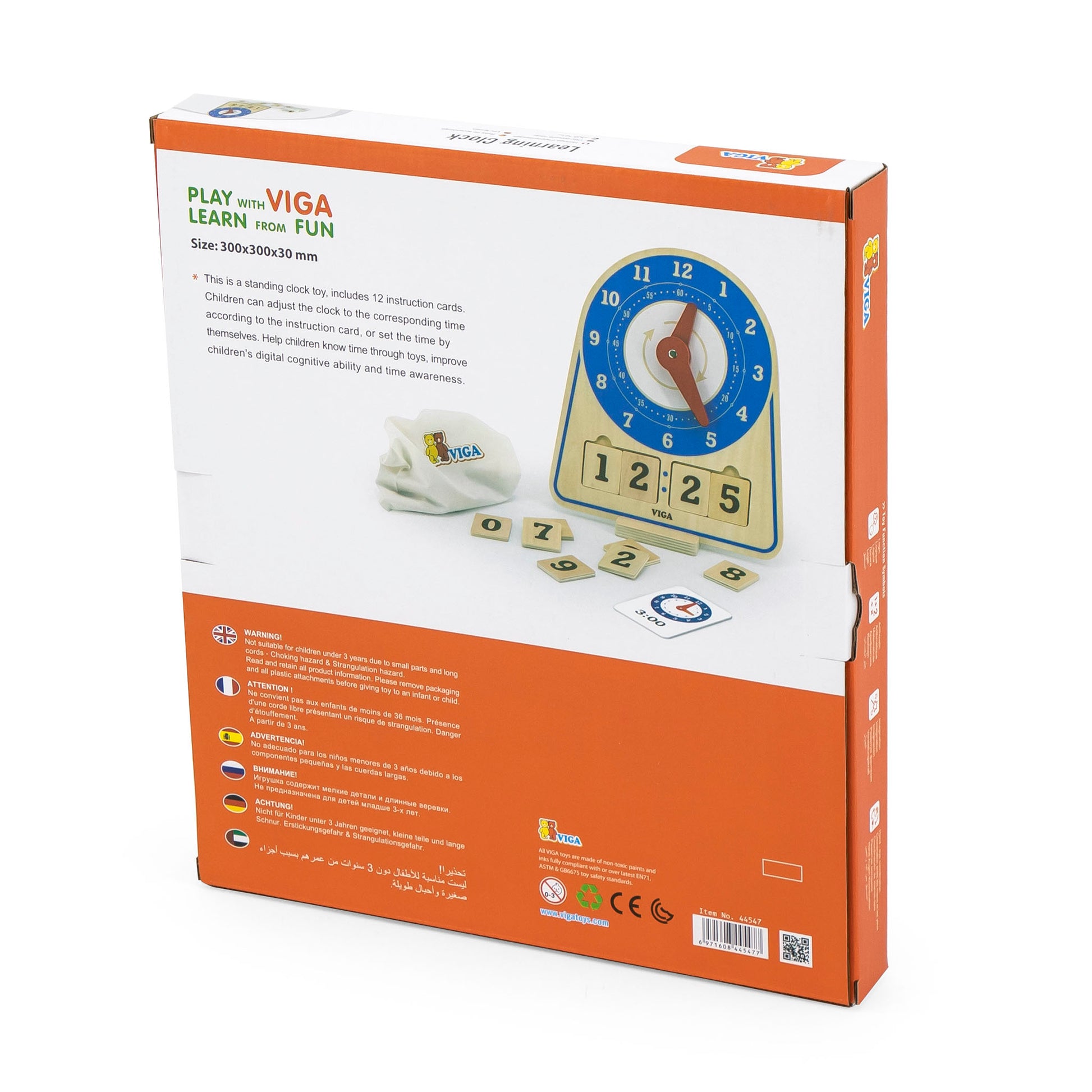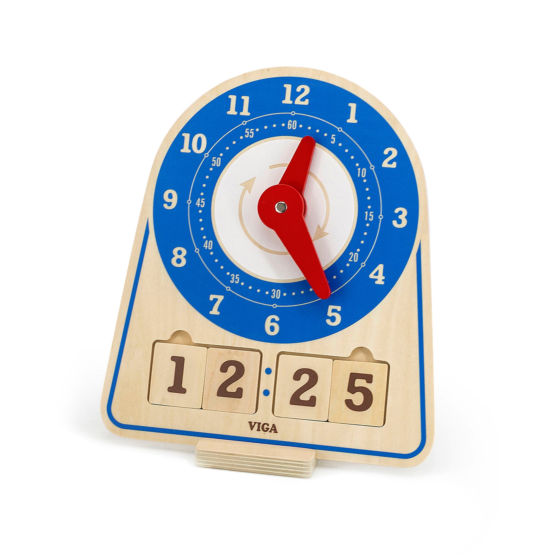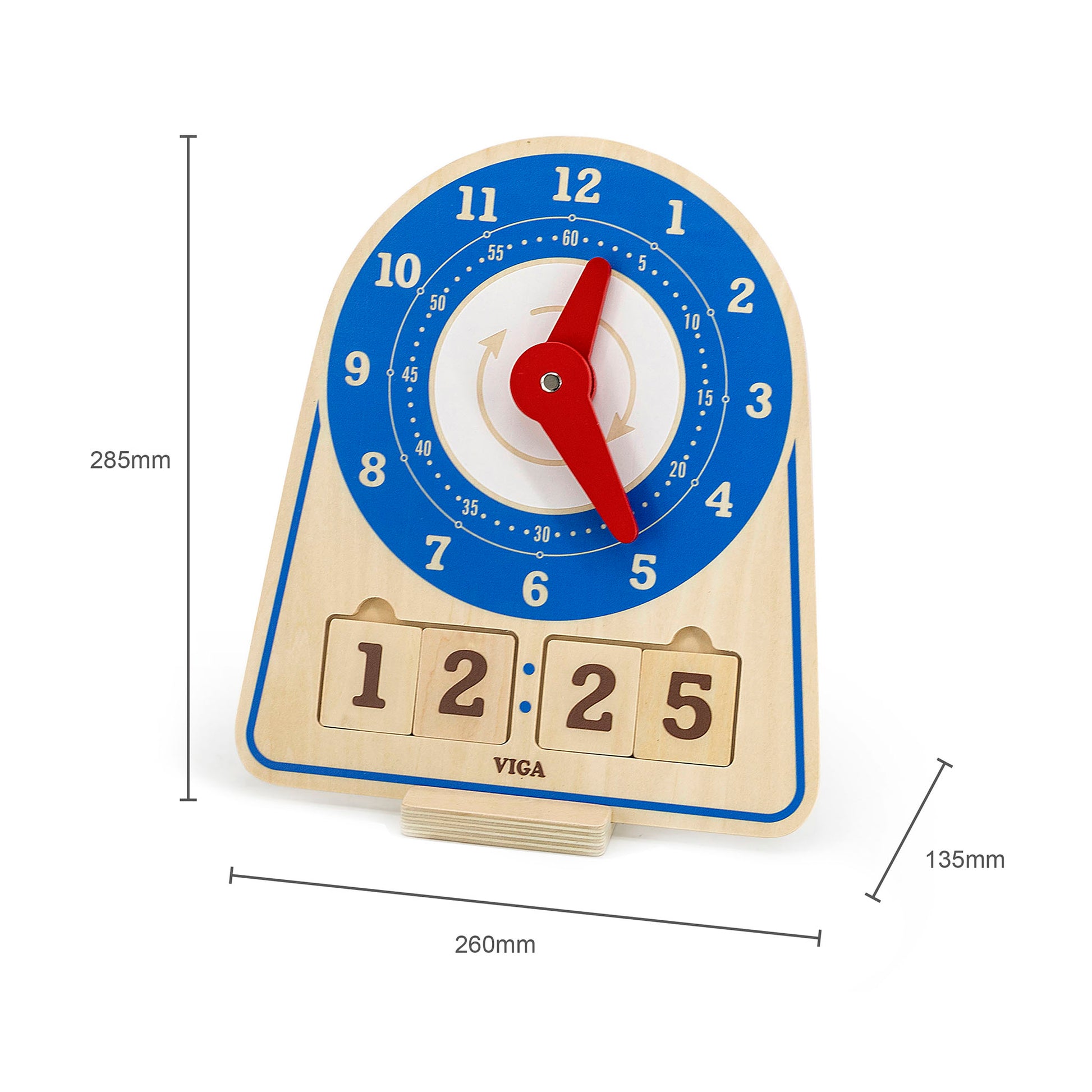 The Learning Clock is a fascinating educational toy designed to help children develop their understanding of time in a playful and interactive way. It features a standing design with two components—an analog clock dial and a digital time display.