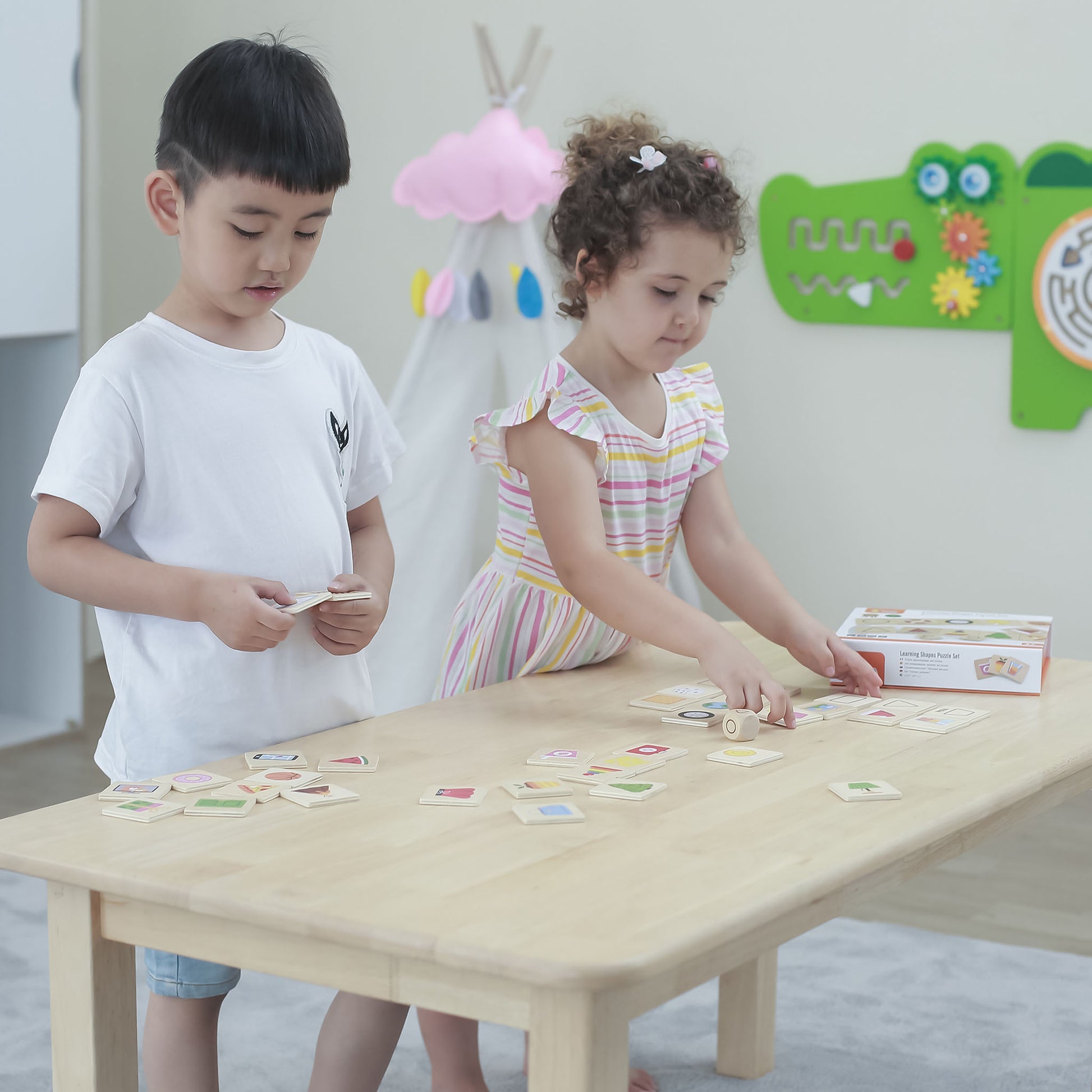 Engage in a delightful puzzle-solving adventure and learn about the basic five shapes with this educational toy. Designed to promote shape recognition and object association, this puzzle set offers an interactive and hands-on approach to learning.