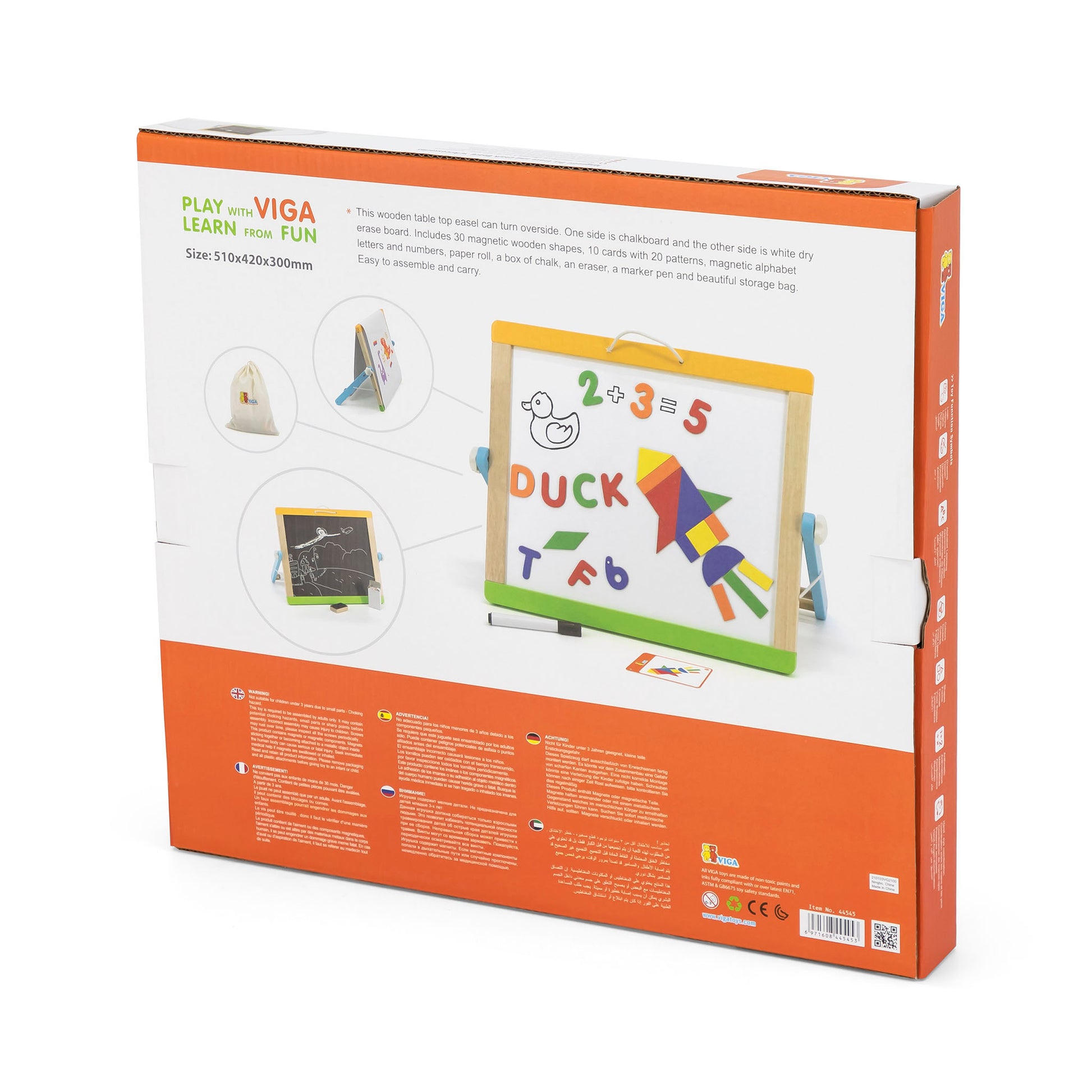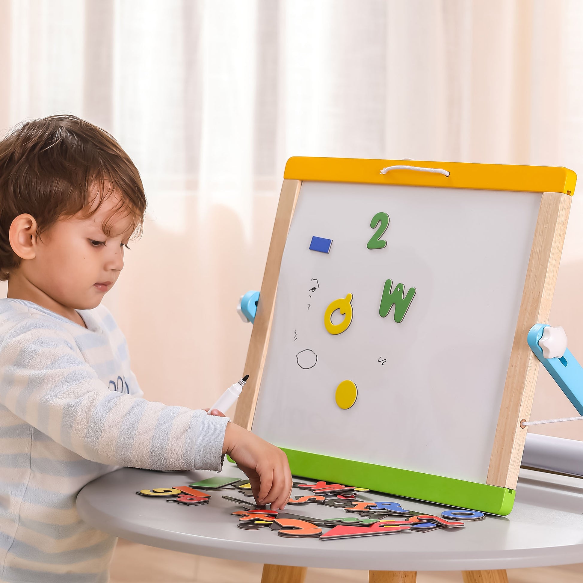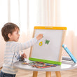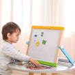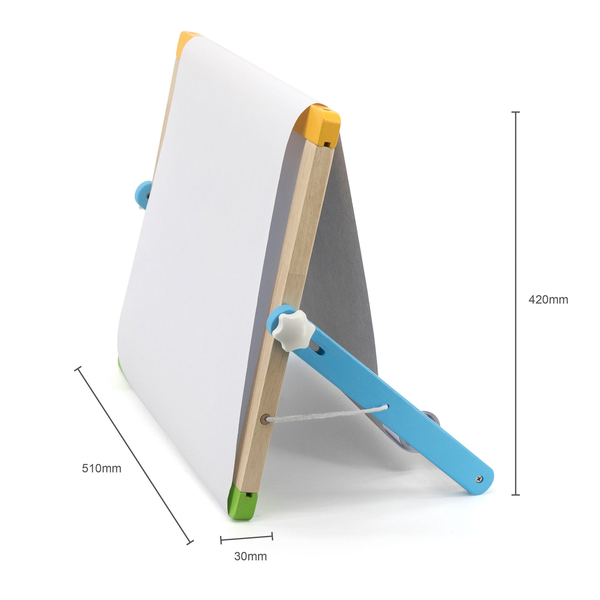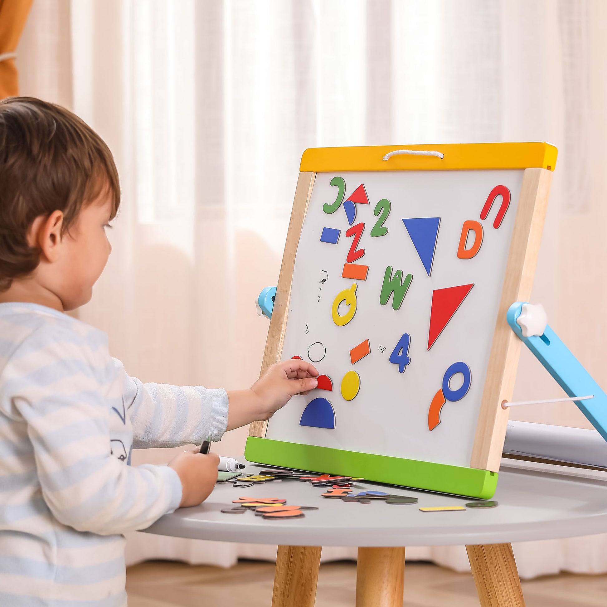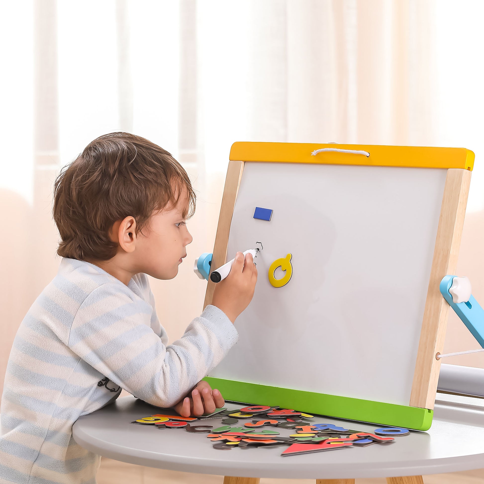 The multi-functional easel design of the Magnetic Dry Erase Chalk Board encourages a variety of artistic activities. Children can paint, draw, and write in a comfortable and supportive setting, inspiring their creativity and self-expression. The adjustable height and angle of the easel accommodate children of different ages and sizes, ensuring optimal comfort during play.