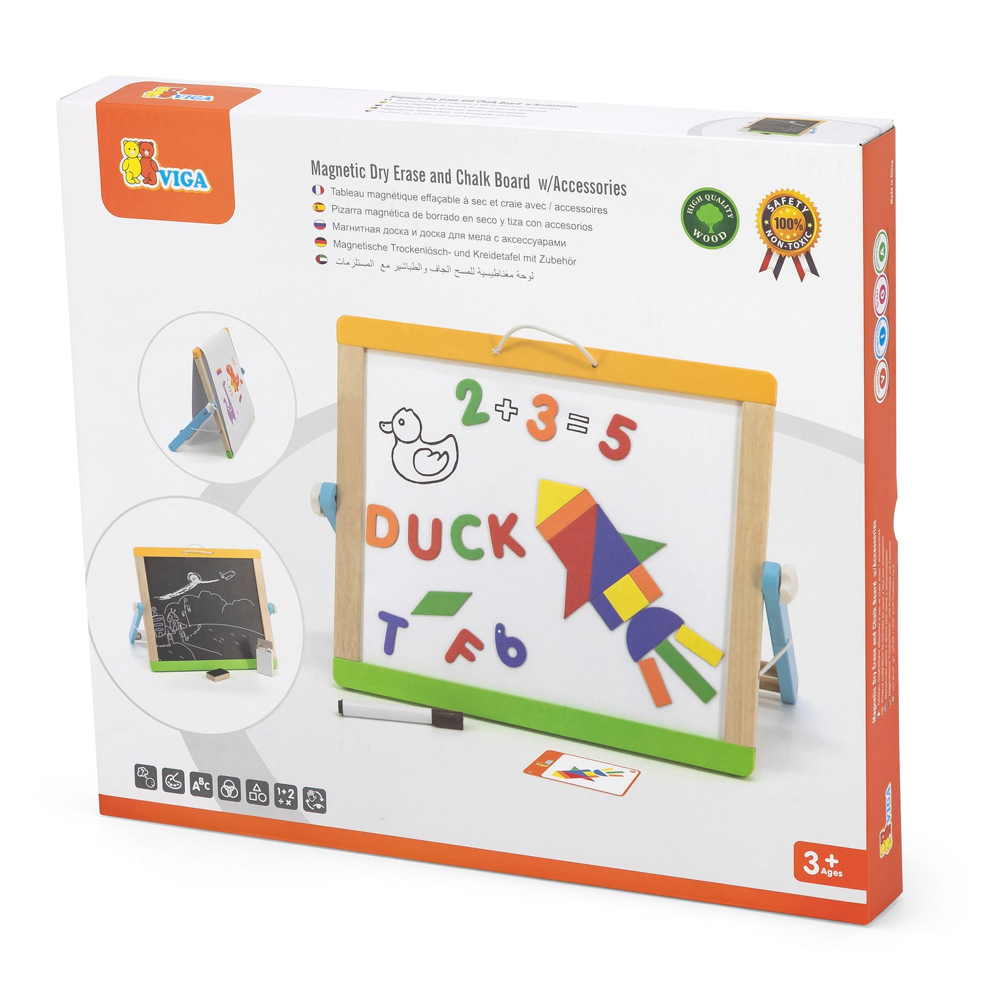 The Magnetic Dry Erase Chalk Board is an engaging and educational toy that fosters learning, creativity, and fine motor skills. It promotes language development, numeracy, and artistic expression, making it an ideal tool for early childhood education, homeschooling, or as a fun and interactive toy for children aged three and above. With its combination of magnetic elements, versatile surfaces, and portability, the Magnetic Dry Erase Chalk Board offers endless opportunities for imaginative play, learning, and artistic exploration.