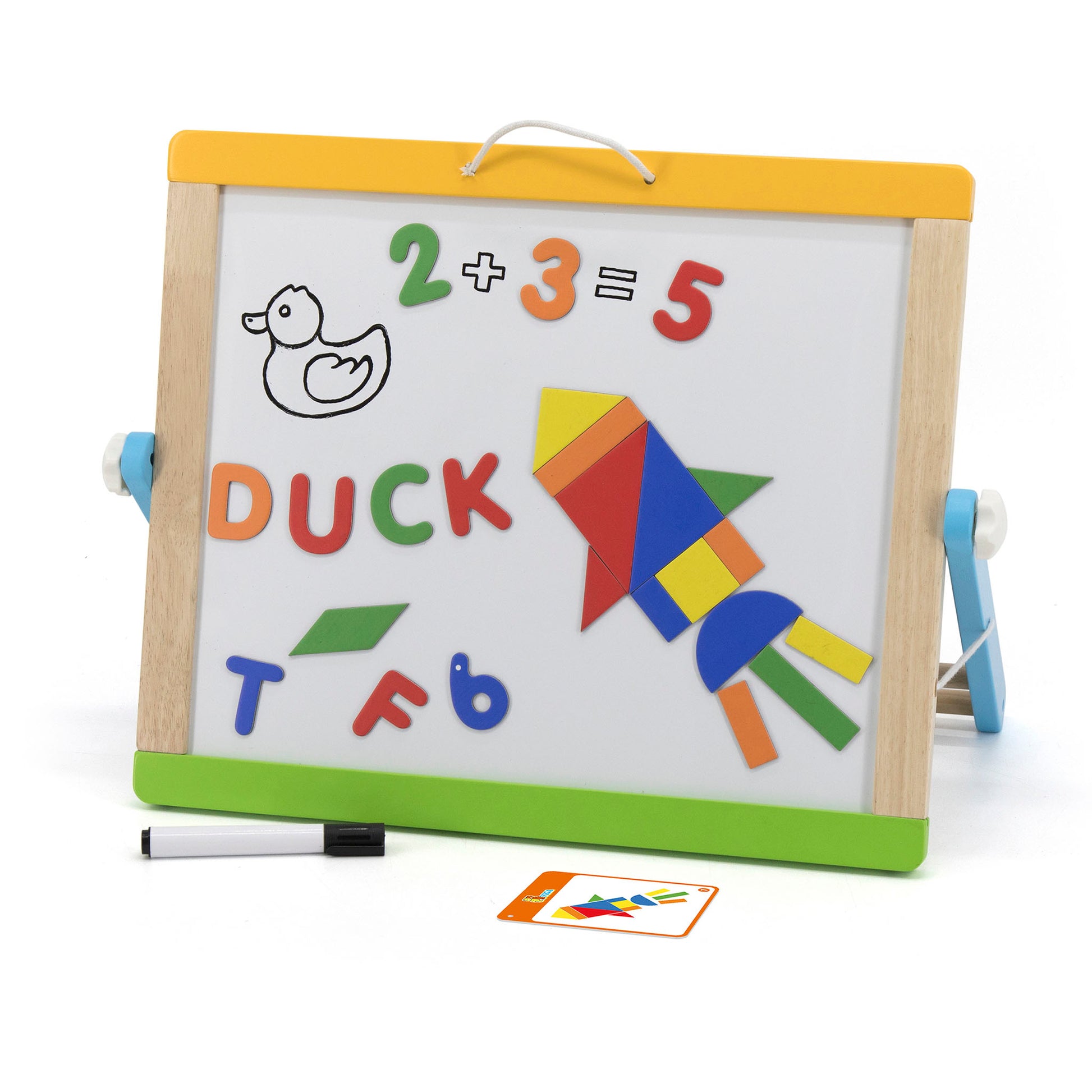 The Magnetic Dry Erase Chalk Board includes a variety of magnetic components to enhance the learning experience. With 26 magnetic alphabets and 10 magnetic numbers, children can explore and practice letter and number recognition, spelling, and basic arithmetic. The 29 magnetic shape pieces add an extra layer of creative play, allowing children to build and construct various designs and patterns.