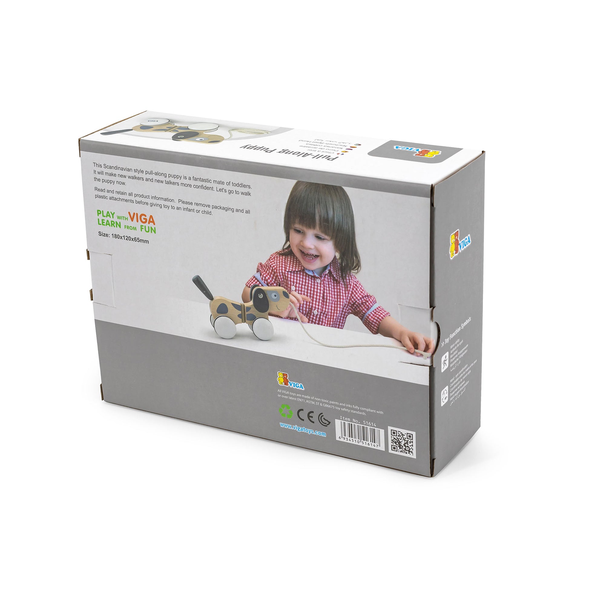 Not only does our pull-along puppy encourage walking, but it also sparks imaginative play and language development in new talkers. Children can engage in pretend play, creating stories and adventures with their new furry friend. As they interact with the puppy, they have the opportunity to practice verbal skills, learn new words, and enhance their communication abilities.