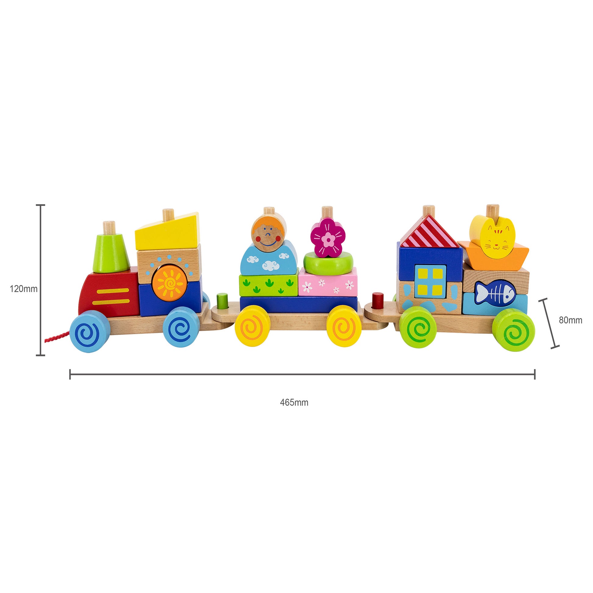 The Stacking Train is a versatile and engaging toy that combines the elements of a stacking toy and a push-along toy. Designed with brightly colored wooden blocks in various Learning Shapes, this toy offers endless possibilities for creativity and exploration.