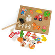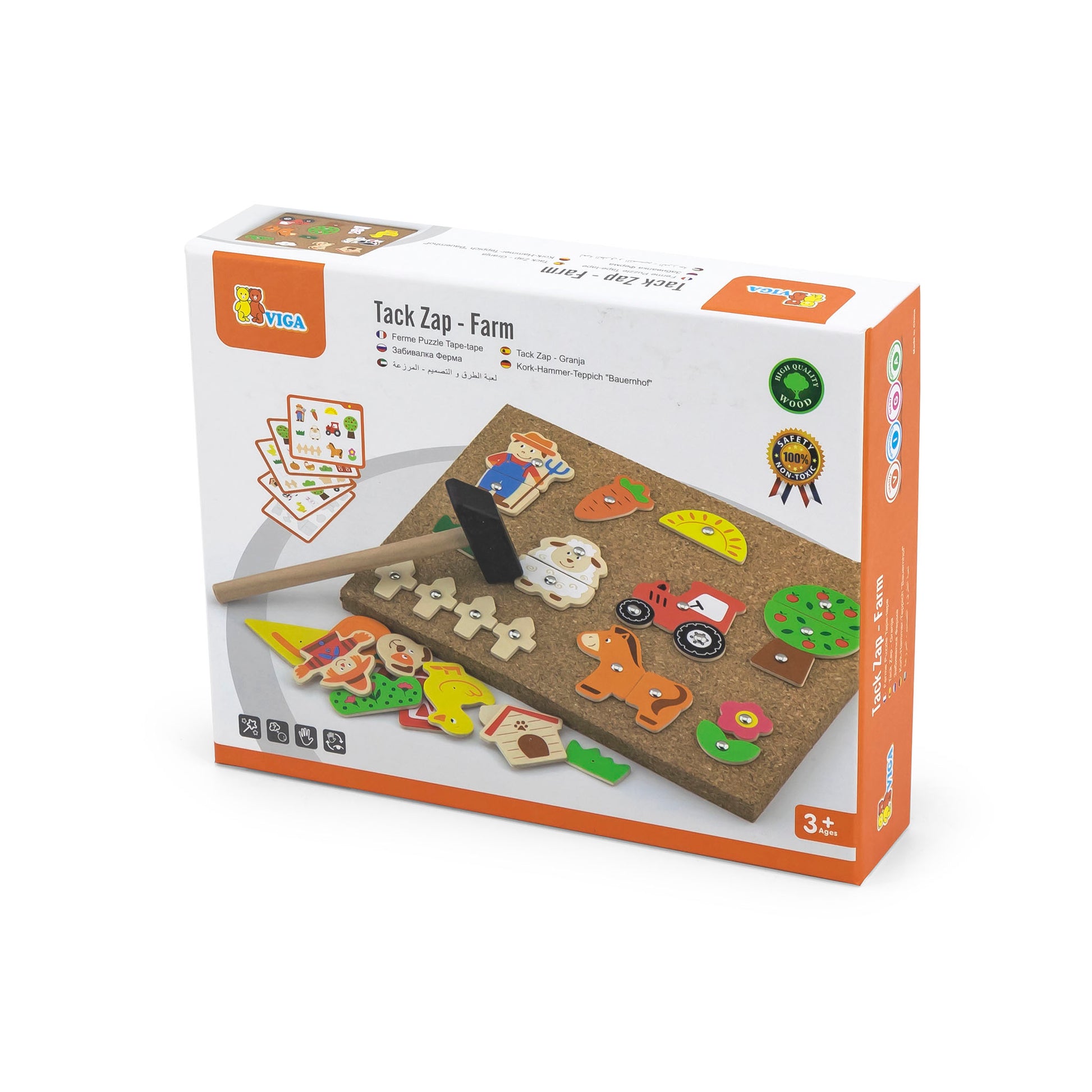 The Tack Zap Farm play set is an engaging and creative toy that allows children to explore the world of farms while developing their fine motor skills and problem-solving abilities. It includes a variety of farm-themed wooden elements, a cork board, a hammer, and a box of tacks.